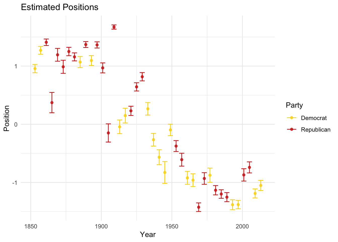labs(x = "Year", y = "Position", color = "Party") +