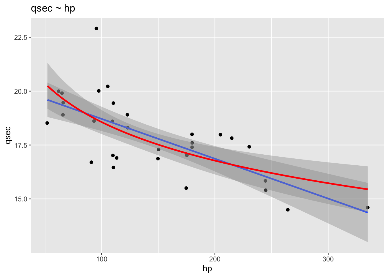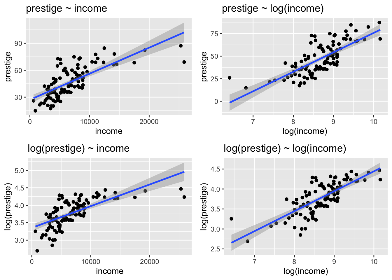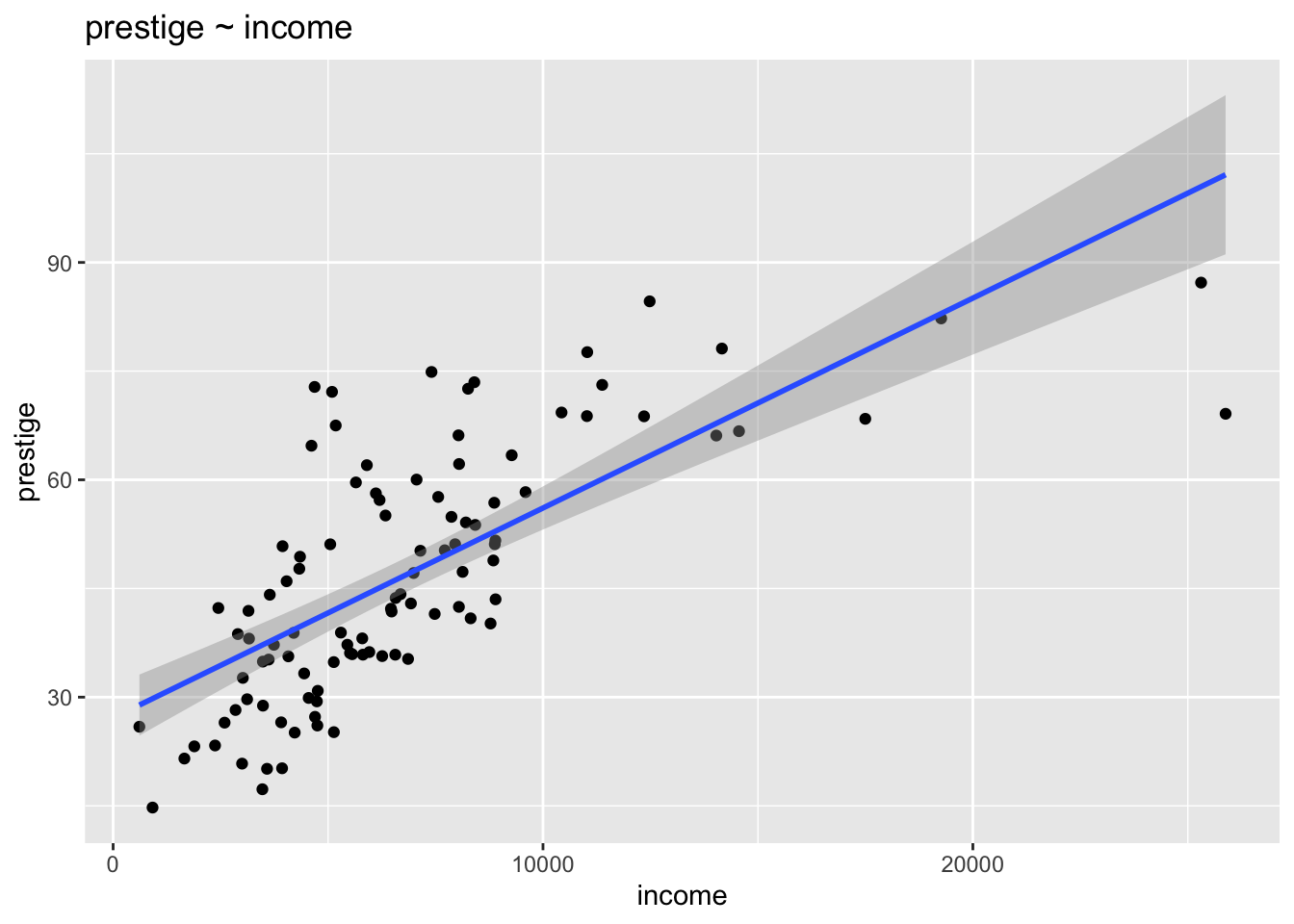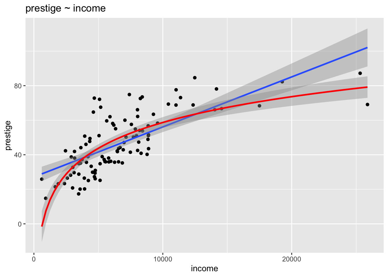 To include \(age^2\) in the model, we can enclose it in parentheses and preface it with a capital “I” (i.e. I(age^2)). This tells the lm() command to calculate whatever is inside I().