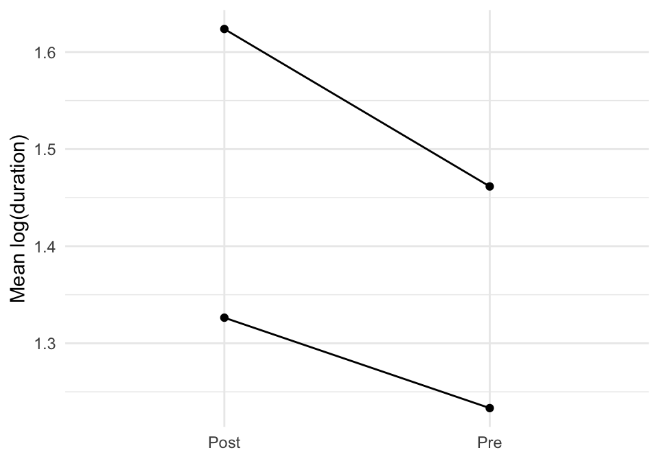 23.3.1 A.1 Start with a picture: group means pre vs post