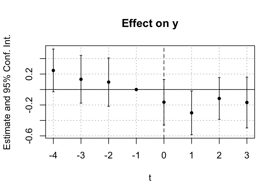 m_es <- feols(y ~ sunab(g, t) | id + t, data = panel, cluster = ~id)